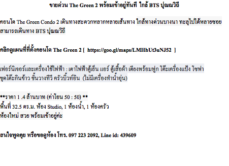 ขายคอนโดโครงการ The Green II Condominium @ Sukhumvit - 1850000 บาท ติดต่อคุณ Tri tri