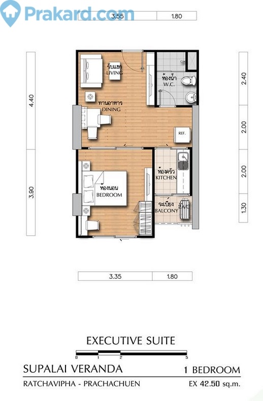 ขนาดพื้นที่ 44.0 ตารางเมตร