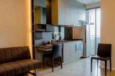 For rent 19th Flr. new Condominium offering unobstructed high rise views. 35 sq.m., 1 bedroom, 1 bathroom, 1 livingroom . The unit is fully furnished with appliances including TV, refrigerator, hot shower, 2 air conditioners, queen-size bed, sofa, desk, closet, sink, and washing machine.