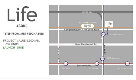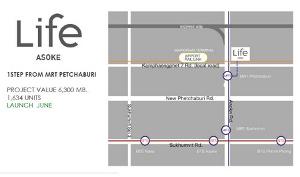 ขายราคาพิเศษ Life Asoke 35 ตรม ชั้น 8 ห่างจาก MRT เพชรบุรี 130 เมตร โครงการมี Sky walk