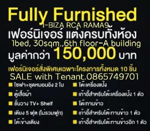 ขาย I biza condo RCA 1ห้องนอน 32 ตรม.ตึกA ชั้น8 ห้องมุม ตกแต่งครบ พร้อมอยู่