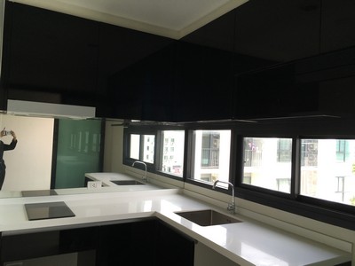 ครัวสวยหรู ตู้บิวท์ พร้อมเตาไฟฟ้า และเครื่องดูดควัน