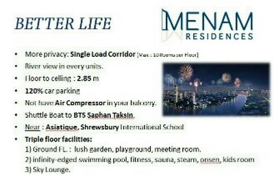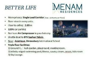 For rent Menam Residense Luxury residential near Asiatique just along Chaopraya river