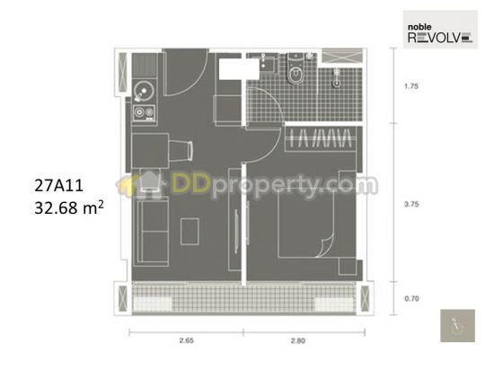 ห้อง 27A11 ขนาด 32.68 ตร.ม. 1 ห้องนอน