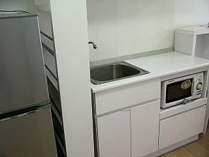 Mini kitchen, LG refrigerator 6.9Q, microwave