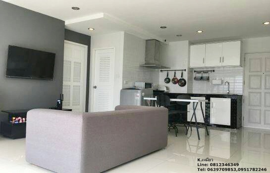 พื้นที่ 1 ห้องรับแขก (แบ่งเป็นห้องนอนเล็กได้ ) โซฟา ตู้เก็บของ ทีวีจอ LED และแอร์คอนดิชั่น