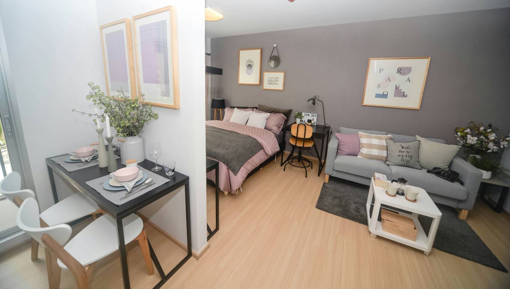 ให้เช่าคอนโด Unio Sukhumvit 72 ใกล้ BTS แบริ่ง ตกแต่งครบชุดด้วยเฟอร์นิเจอร์บิวท์อิน