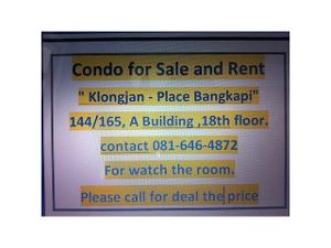 condo for rent /sale , Klongjan-place building , Bangkapi .