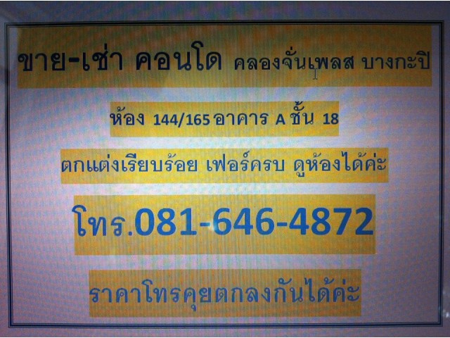 ให้เช่า / ขาย คอนโดคลองจั่นเพลส อาคาร A ชั้นที่ 18 ห้องเลขที่ 144/165