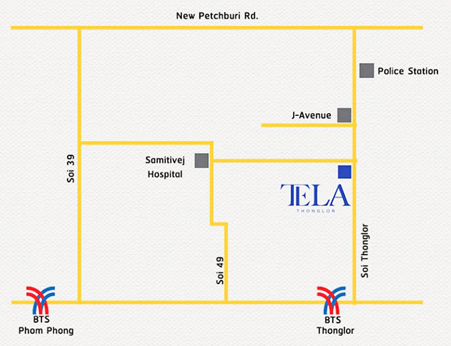 Location: Corner of Soi Thonglor 13, on main road Sukhumvit 55, near J Avenue only 200 meters, 350 meters to 8 Thonglor foodland supermarket open 24 hrs., BTS Thonglor 1.2 km
