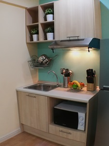 - มีตู้เย็น เคาน์เตอร์ครัว ซิงค์ล้างจาน ไมโครเวฟ เตาไฟฟ้า