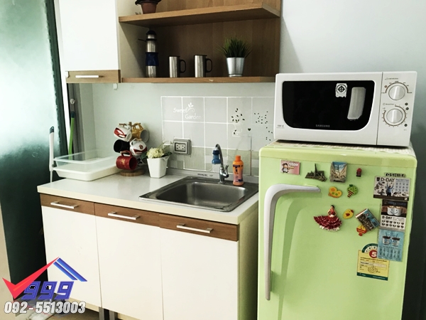 ห้องตกแต่งสวย เรียบร้อยพร้อมเข้าอยู่ เป็นแบบห้อง studio มีการแบ่งกั้นห้องครัว (แบบครัวปิด) โดยแบ่งสัดส่วนการใช้งานอย่างลงตัว ขายพร้อมเฟอร์นิเจอร์และเครื่องปรับอากาศ 1 ตัว มีระเบียงโดยหันทางทิศเหนือ