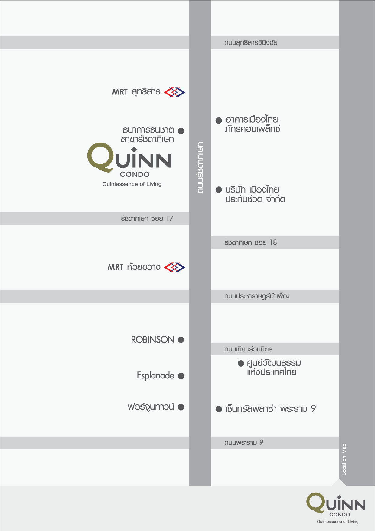 N1028 ขาย ควินน์ คอนโด รัชดา17 ข้างธนาคารธนชาต ติดถนนรัชดา ห่าง MRT สุทธิสารประมาณ 200 เมตร