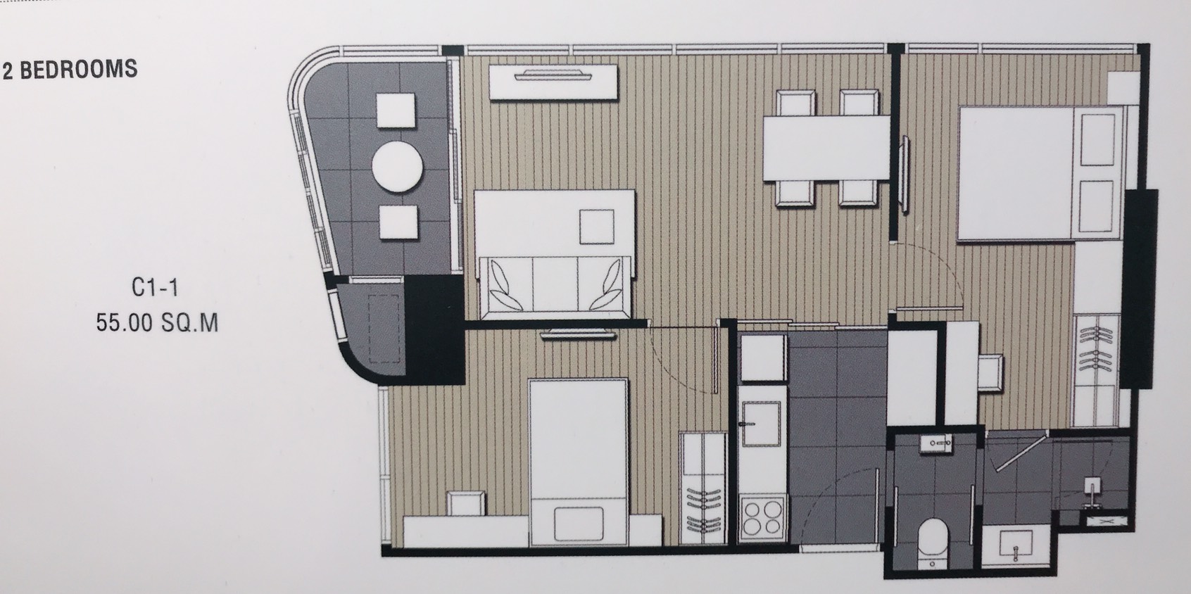ให้เช่า ไอดีโอ โมบิ อโศก 2 ห้องนอน 1 ห้องน้ำ ราคา 45000 บาท MRT เพชรบุรี