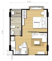 รูปแบบห้อง 1 ห้องนอน 1 ห้องน้ำ