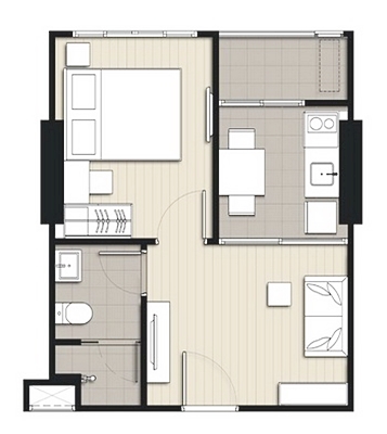 เนื้อที่ 33 ตารางเมตร ชั้น 18 ตึก A 1 ห้องนอน 1 ห้องน้ำ