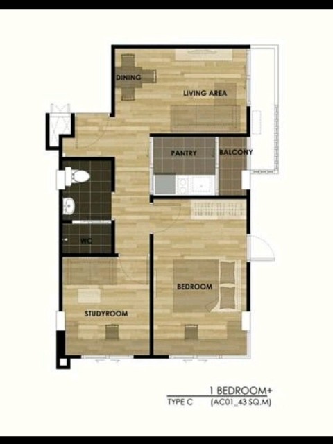 ขนาดพื้นที่ 43.0 ตารางเมตร