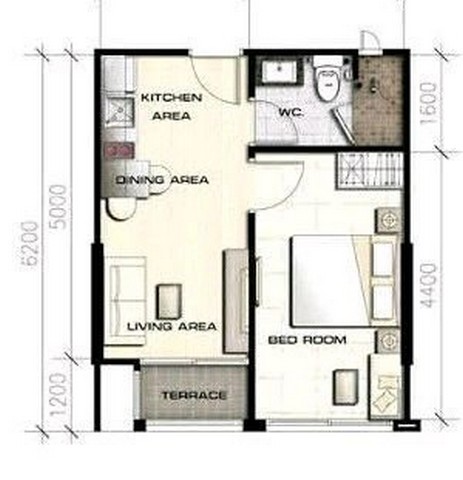 ขนาดพื้นที่ 44.0 ตารางเมตร