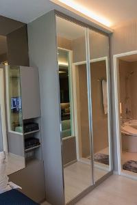 ด้านหน้าสุดของโครงการ ห้องหัวมุมใกล้ลิฟท์ ระเบียงหันไปทางทิศเหนือ เดินไปห้องซาวน่า ออนเซน ยิมที่อยู่ชั้นล่างของตึกบีได้แค่พริบตาเพราะมีประตูทะลุกัน