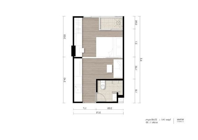 ให้เช่า Wynn Condo Phaholyothin 52 แบบ 1ห้องนอน ขนาด 24 ตร.ม. อาคาร A ชั้น 4
