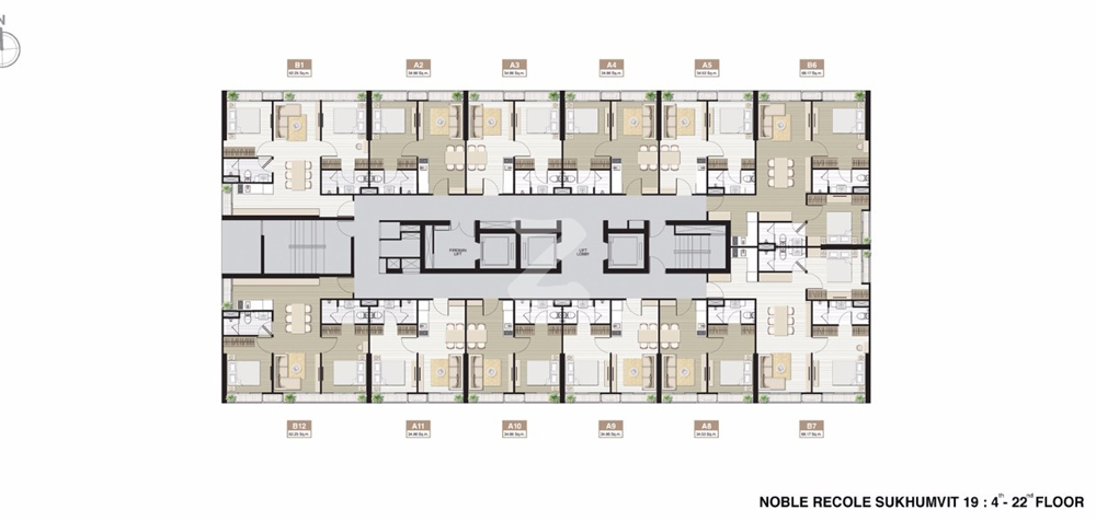 ขายดาวน์ คอนโด Noble Recole สุขุมวิท 19 อโศก 35 ตรม ทิศสวนมุมดีชั้นพิเศษ