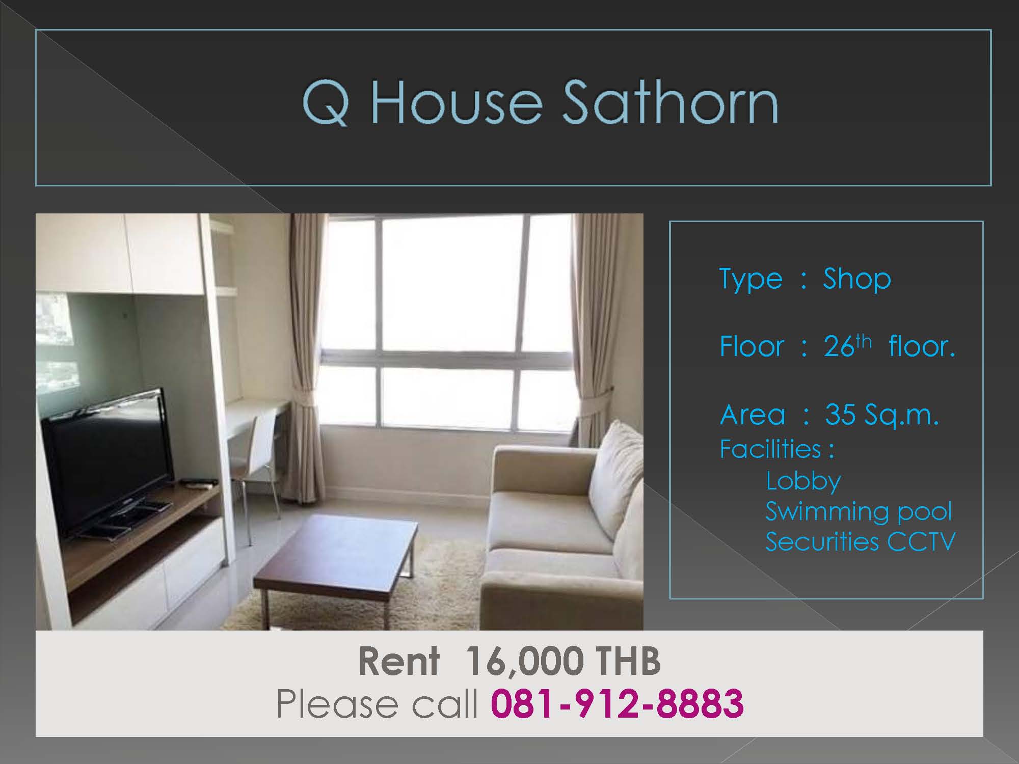 ให้เช่าคอนโดโครงการ Q house Condo สาทร | คิว เฮาส์ สาทร | - 19000 ต่อเดือน ติดต่อคุณ Sara ravisara