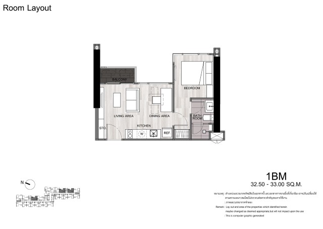 ขนาดพื้นที่ 33.0 ตารางเมตร