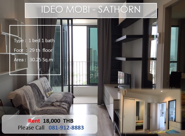 ให้เช่าคอนโดโครงการ Ideo Mobi sathorn | Ideo สาทร | ไอดีโอ โมบิ สาทร | ไอดีโอ โมบิ สาธร | IDEO สาทร-ตากสิน | Ideo Mobi sathorn-Taksin | ไอดีโอ สาทร - 18000 ต่อเดือน ติดต่อคุณ Easyhomeland Easyhomeland