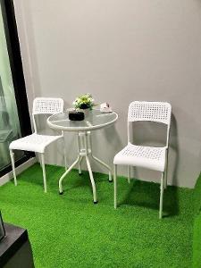 เนื้อที่ 28 ตารางเมตร ชั้น 4 ตึก A 1 ห้องนอน 1 ห้องน้ำ 1 ห้องนั่งเล่น มีระเบียงปูพื้นสนามหญ้า ขนาดใหญ่