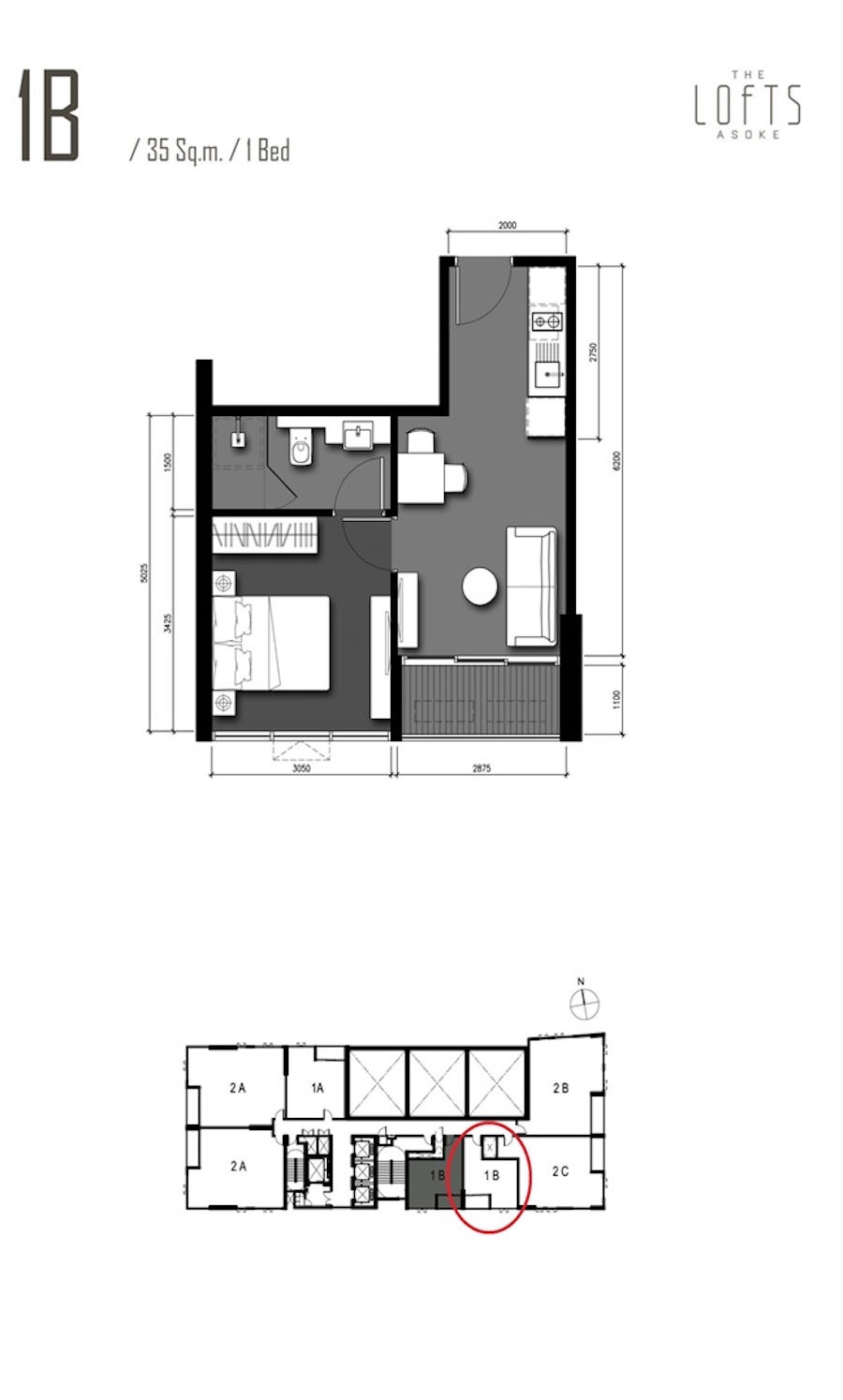 ให้เช่าคอนโด ลอฟท์ อโศก The Lofts Asoke ใกล้ MRT เพชรบุรี 1 ห้องนอน 35.65 ตรม