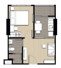 เนื้อที่ 33 ตารางเมตร ชั้น 18 ตึก A 1 ห้องนอน 1 ห้องน้ำ