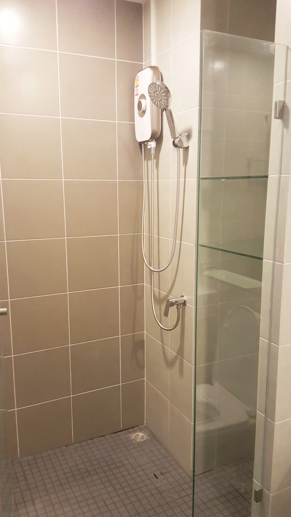 - Water heater, Shower screen with sanitary ware