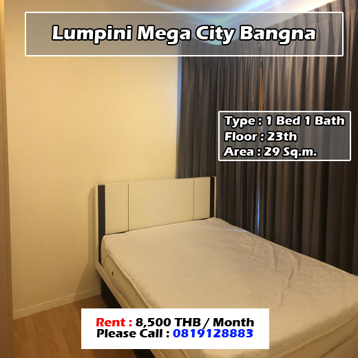ให้เช่า ลุมพินี เมกะซิตี้ บางนา 1 ห้องนอน 1 ห้องน้ำ ราคา 7000 บาท BTS บางนา