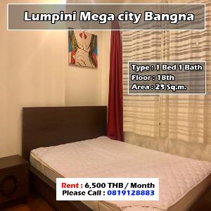 ให้เช่า ลุมพินี เมกะซิตี้ บางนา 1 ห้องนอน 1 ห้องน้ำ ราคา 7000 บาท BTS บางนา