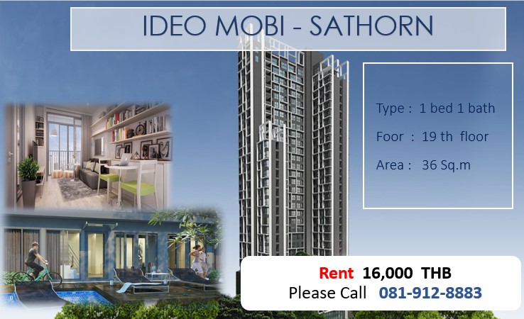 ให้เช่าคอนโดโครงการ Ideo Mobi sathorn | Ideo สาทร | ไอดีโอ โมบิ สาทร | ไอดีโอ โมบิ สาธร | IDEO สาทร-ตากสิน | Ideo Mobi sathorn-Taksin | ไอดีโอ สาทร - 16000 ต่อเดือน ติดต่อคุณ Easyhomeland Easyhomeland