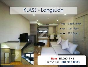 (เช่า) FOR RENT KLASS LANGSUAN / 2 beds 2 baths / 72 Sqm.**65,000** NEAR BTS CHIDLOM