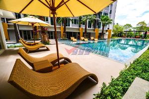 คอนโดพื้นที่ขนาด 45.3 ตร.ม. 2 ห้องนอน 1 ห้องน้ำ ชั้น 8 วิวสระว่ายน้ำ พร้อมเฟอร์นิเจอร์ เตียง, โซฟา, ตู้เสื้อผ้า โซฟา, โต๊ะทานข้าว และเครื่องใช้ไฟฟ้า แอร์ 3 ตัว, ตู้เย็น, ไมโครเวฟเครื่องซักผ้า