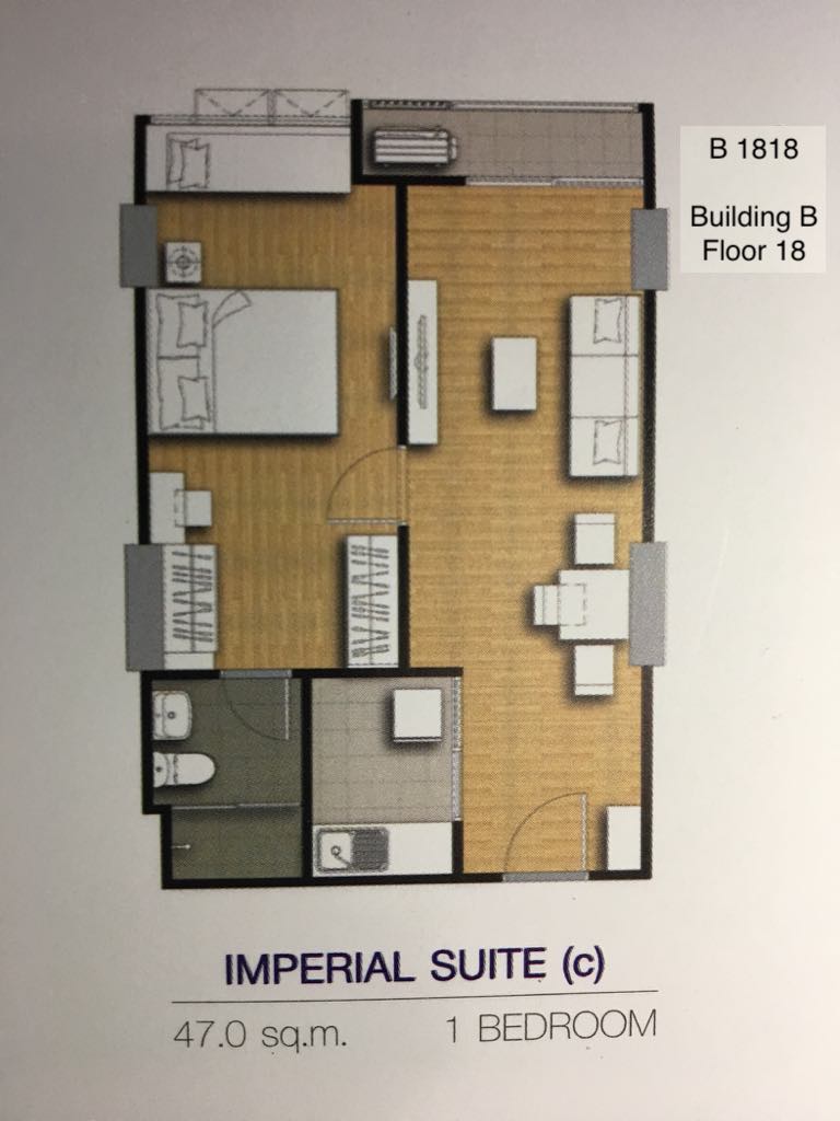 เลขห้อง B1818 / ชั้น 18 / ขนาด 47 ตร.ม.
