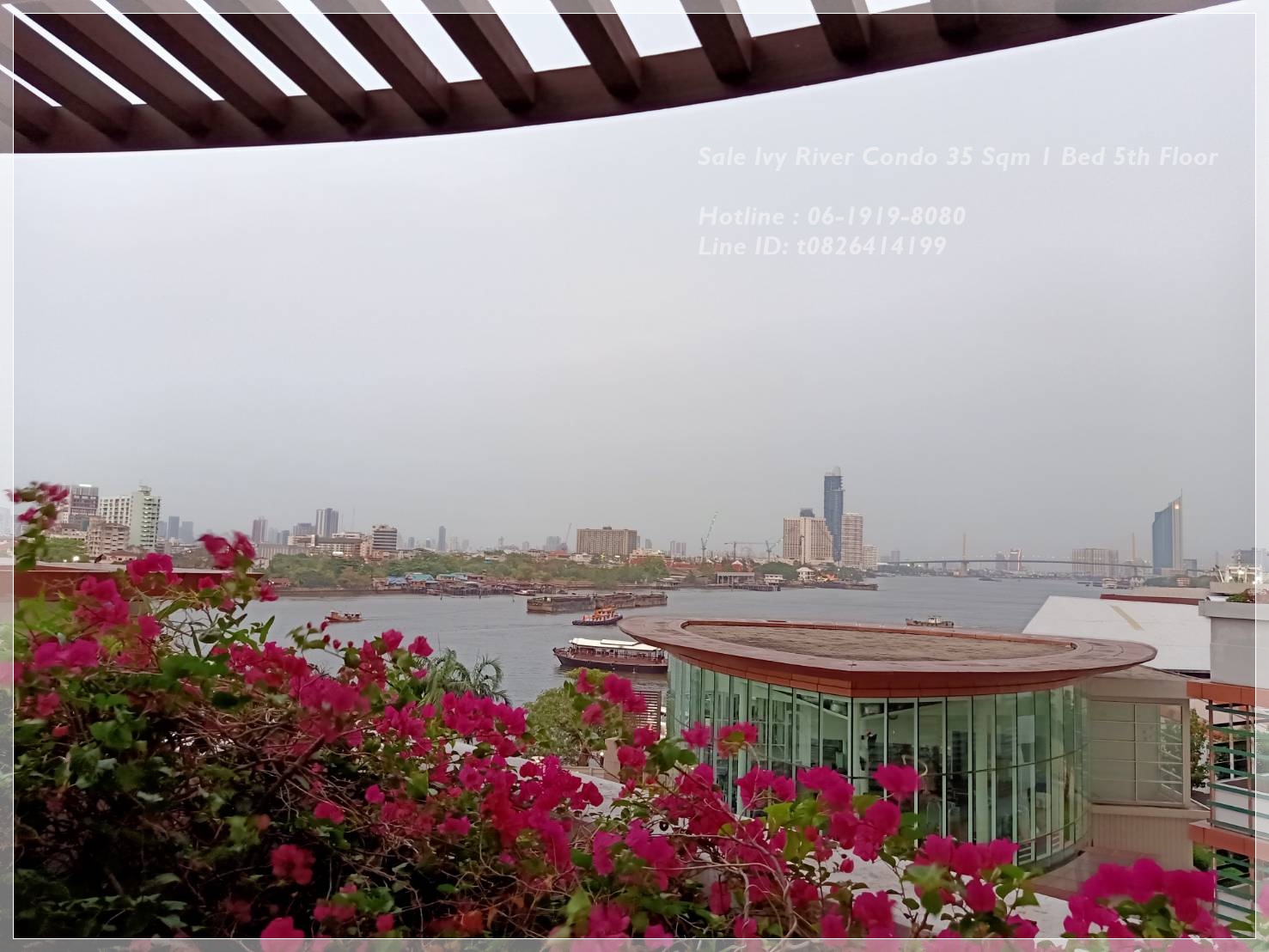 ขายคอนโดริมแม่น้ำบรรยากาศส่วนรมรื่นเห็นต้นไม้จากในห้องชั้นไม่สูงเหมาะกับคนที่ไม่ชอบชั้นสูง