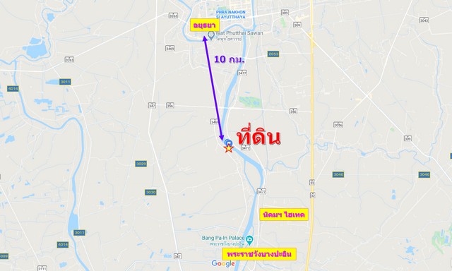 ขายถูกมากก ที่ดินติดแม่น้ำเจ้าพระยา 22-2-66 ไร่ อยุธยา บางปะอิน ใกล้ชุมชนตลาดเกรียบ