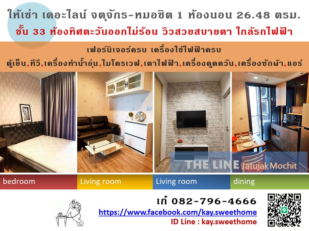 ให้เช่าคอนโด เดอะ ไลน์ จตุจักร ใกล้รถไฟฟ้า BTS หมอชิต 1 ห้องนอน 27 ตรม ชั้นสูง