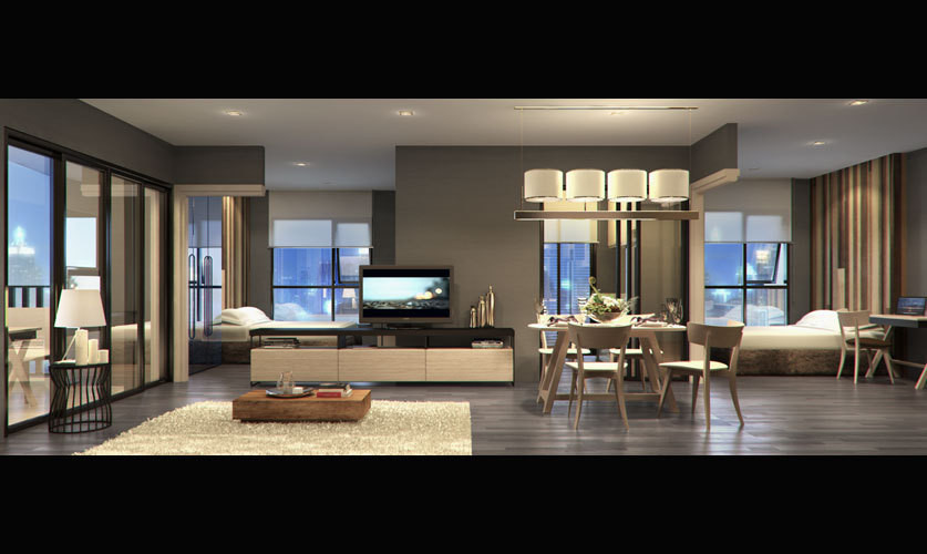 เช่า Condolette Midst Rama 9 ห้องตกแต่งสไตล์ Modern ตกแต่งพร้อมเข้าอยู่