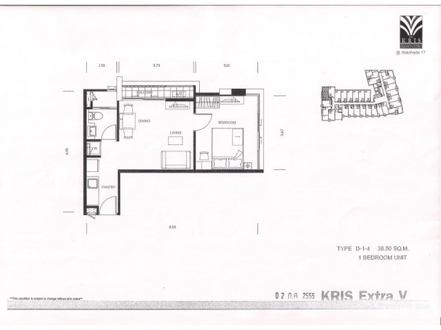 ขายดาวน์ คอนโด THE KRIS EXTRA 5 ชั้น 3 ห้องสตูดิโอ ขนาด 28 ตร.ม.