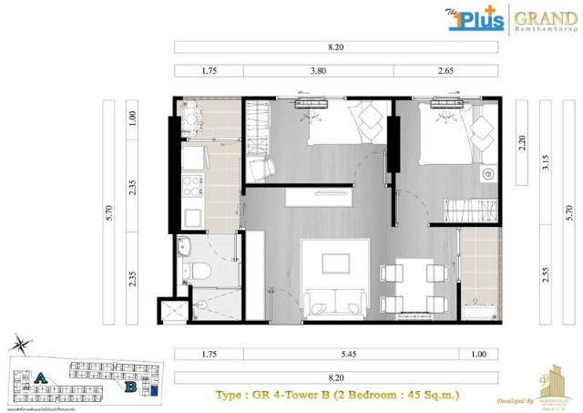 ขนาดพื้นที่ 45.0 ตารางเมตร