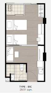 เนื้อที่ 29.51 ตร.ม. 1 ห้องนอน 1 ห้องน้ำ 1 ห้องรับแขก One Bedroom Extra ตึก B พร้อมที่จอดรถ