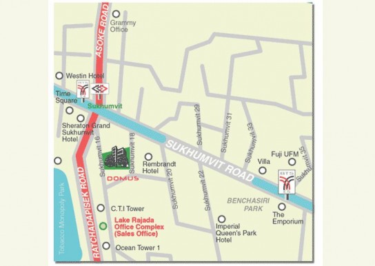 สุขุมวิท ซอย 16 และ ซอย 18 ถนนสุขุมวิท กรุงเทพฯ ห่างจากสถานีรถไฟฟ้า BTS อโศก และสถานีรถไฟฟ้าใต้ดิน MRT สุขุมวิท ประมาณ 350 เมตร