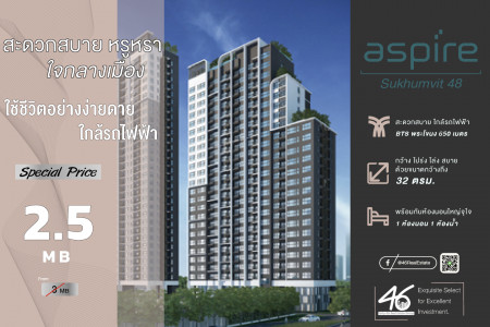 ขายคอนโดโครงการ Aspire สุขุมวิท 48 (แอสปาย สุขุมวิท 48) - 3250000 บาท ติดต่อคุณ Nattapong