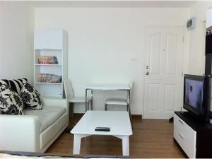 ห้องนอน 1 ห้อง ห้องนั่งเล่น 1 ห้อง ห้องน้ำ 1 ห้อง ชานระเบียงห้อง ที่จอดรถสะดวกสบาย พื้นห้องนอนปูกระเบื้อง พื้นห้องนั่งเล่นปูไม้ลามิเนต