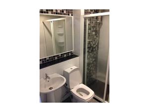 Bathroom : Teak wood laminate floor, glass shower doors. Separate wet / dry, water heater, shelf, corner shelf in the bathroom.