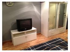 Bedroom: Furniture, wardrobes, sliding window size, vanity, bed size 6 feet with futon, TV cabinet, air Mitsubishi Michigan 18000 BTU with remote, and coffee table, a set of curtains one set, the clothes line 1 set.